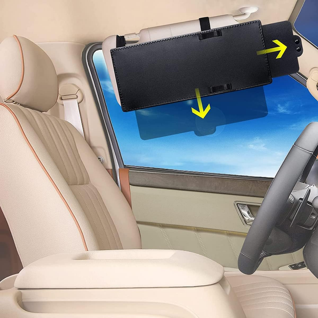Reduserer effektivt blending fra solen og billysene. Forbedrer visuell klarhet for en tryggere kjøring. Enkel og rask installasjon på den eksisterende solskjermen.