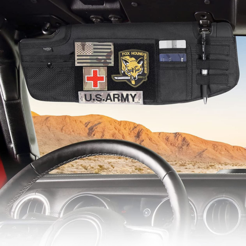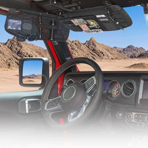 Spesielt designet for Wrangler JL og JT produsert mellom 2018 og 2023, lar denne solskjermorganisatoren deg holde dine essensielle tilbehør perfekt organisert og lett tilgjengelig. Den raske installasjonen uten verktøy og det diskrete designet integreres harmonisk i kupeen.