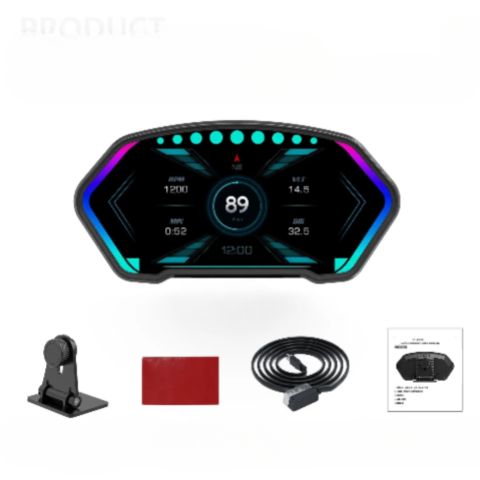 Ten wyświetlacz cyfrowy oferuje natychmiastowy odczyt istotnych informacji podczas jazdy. Zamontowany bezpośrednio na desce rozdzielczej, pozwala monitorować prędkość, napięcie akumulatora i inne dane, nie odrywając wzroku od drogi. Jego jasny ekran i kompaktowy design doskonale wpasowują się w wnętrze Twojego pojazdu.